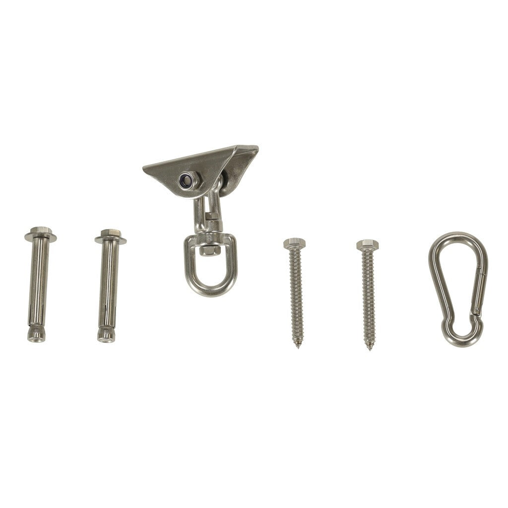 Le support de hamac pour plafond est un kit complet conçu pour fournir un point d'attache solide et sécurisé pour un hamac, en utilisant le plafond ou le mur comme base. Ce produit est idéal pour les amateurs de hamacs et de balançoires, car il permet de créer un espace de détente confortable et sécurisé.Description détaillée du produit :