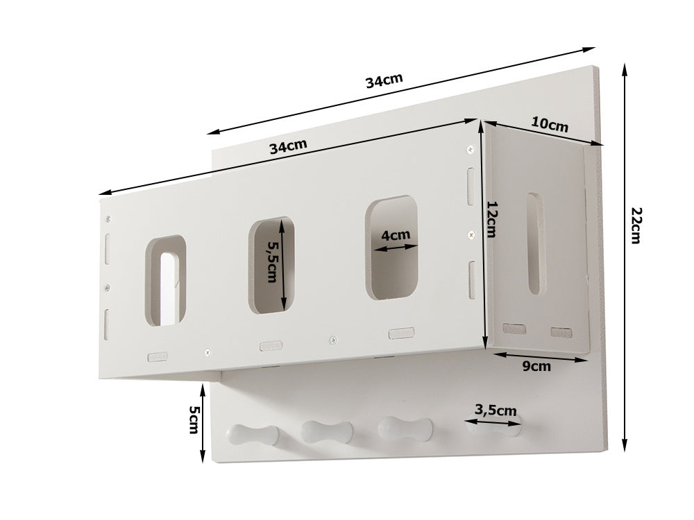 Vous pouvez y ranger des accessoires de salle de bains essentiels et légers et suspendre des serviettes, des gants de toilette ou des lingettes sur les crochets.