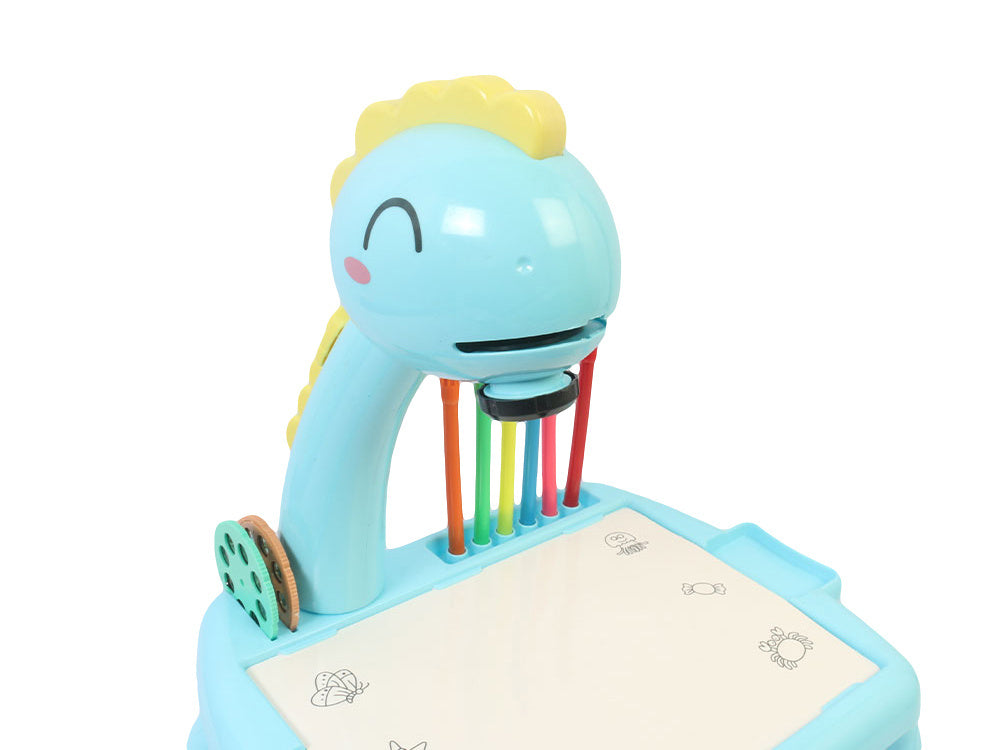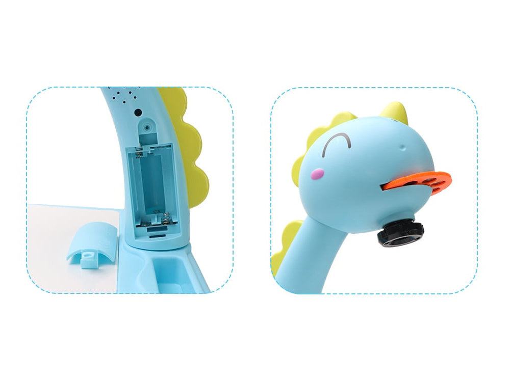 Le projecteur a la forme d'un adorable dinosaure bleu, ce qui fait que les enfants l 'aimeront tout de suite. Il est doté d'une tête mobile qui abrite le projecteur.